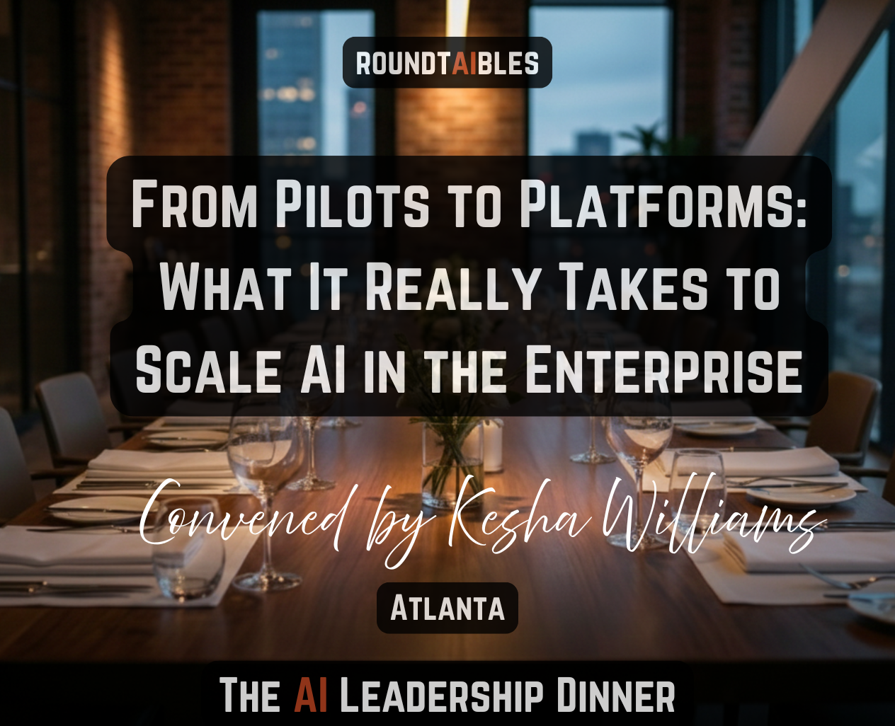 Roundtaibles is an invitation-only dinner series for senior technology and business leaders who are actively shaping real-world AI strategy. Each dinner brings together a carefully curated group of 25 decision-makers for trusted, peer-level conversation designed to build trust and drive meaningful insight.